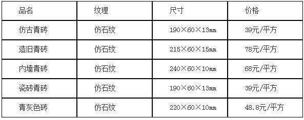 仿古青磚是歸屬于燒結磚,主要原材料為粘土,粘土兌水調(diào)合后,擠壓加工成型,再入磚瓦窯焙烤至(1000度左右)用水冷卻,讓粘土中的鐵不充分氧化,使其具有更好的耐強風化,耐潮等特點。仿古青磚便是模仿古青磚的各種款型、按照古青磚的燒造方式 ,選用古青磚所用的粘土原材料現(xiàn)代化燒造的青磚。那么仿古青磚價格是多少錢呢,梳理資料如下所示: